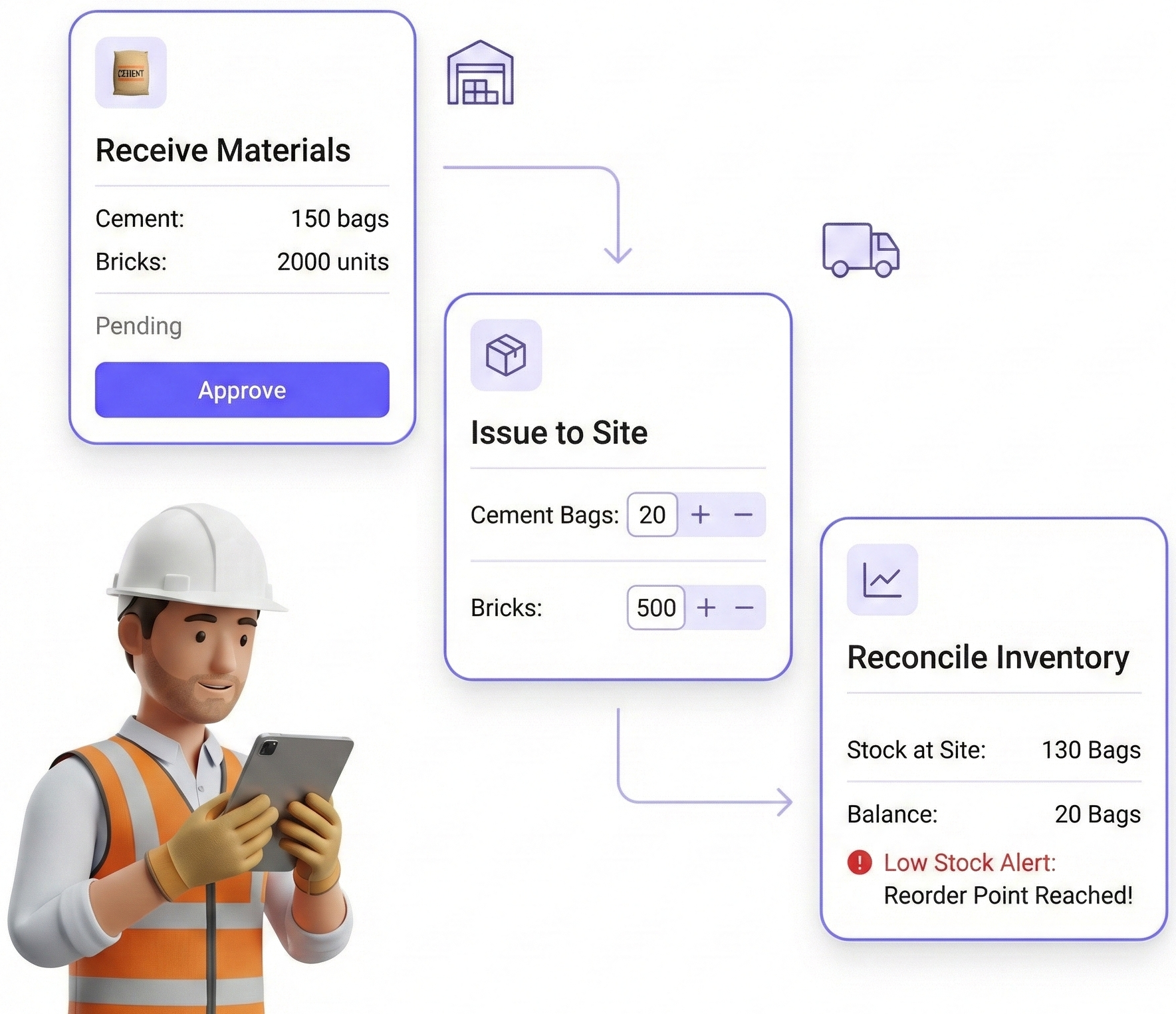 Keep track of every brick and beam. Monitor stock levels, schedule deliveries, and prevent project delays with real-time inventory management.